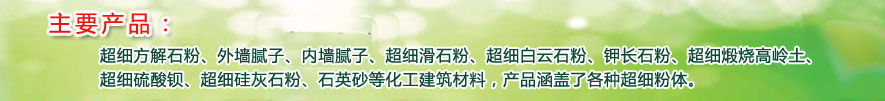 廣福建材集團始建于1994年,是國內較大規模的超細粉體加工企業。主要產品有超細方解石粉、外墻膩子、內墻膩子、超細滑石粉、超細白云石粉、鉀... ...詳細>>
